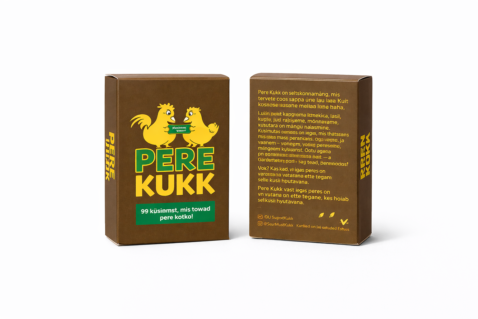 Pere Kukk on seltskonnamäng, mis tõmbab pered – nii sünnipärased kui ise loodud – ühe laua taha ja paneb nad rääkima, meenutama ja muidugi naerma. Küsimused on ausad, südamlikud ja natuke sarkastilised – täpselt nagu päris pereelu ise.
